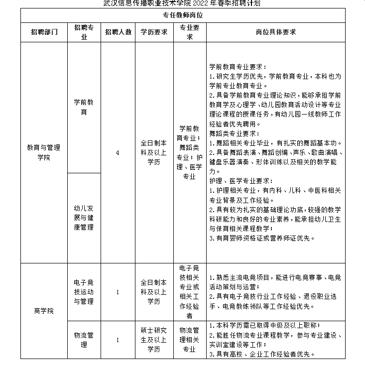 请有意者将个人简历发送至我校组织人事处招聘邮箱:1146645877@qq.com,文件名请以:姓名+应聘岗位+高校人才网命名,面试要求及时间另行通知,一经录用,待遇从优。